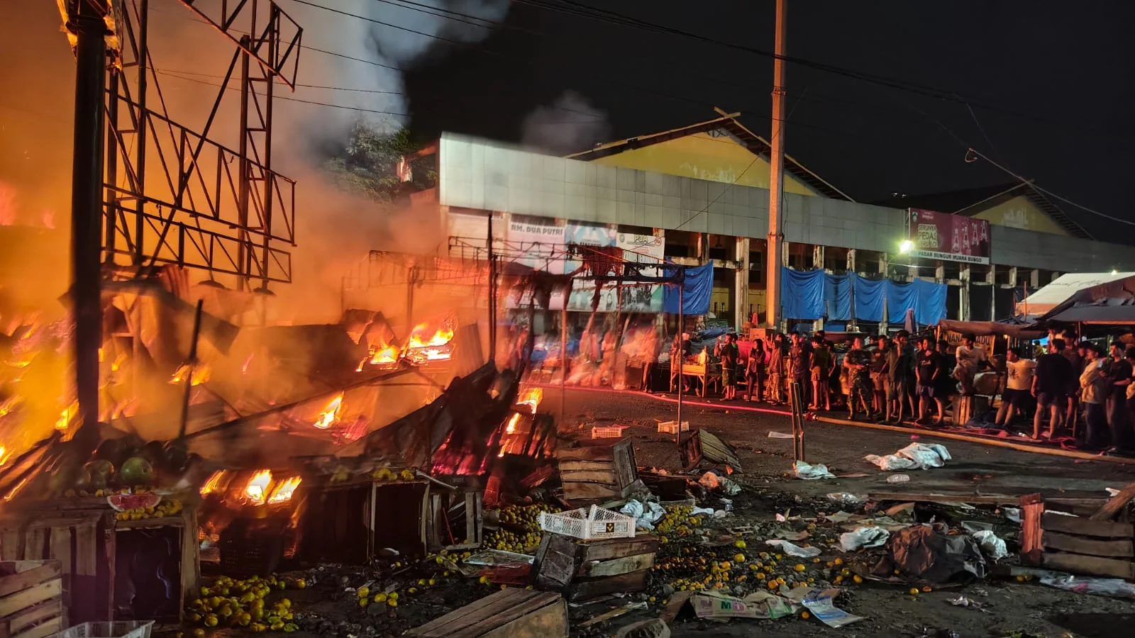 Bungo, Berita24jam.com – Kebakaran hebat terjadi di Pasar Atas Muara Bungo pada Minggu dini hari (26/4/2026) sekitar pukul 03.20 WIB.