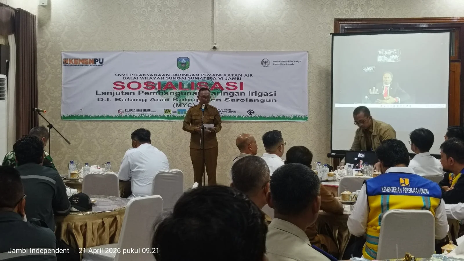 Sarolangun,Berita24jam.com – Pemkab Sarolangun, kembali melakukan sosialisasi Lanjutan Pembangunan Jaringan Irigasi DI Batang Asai, selasa (21/04/2026) di aula Rumah Dinas Bupati Sarolangun.