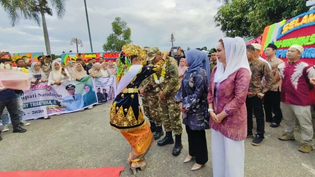 Sarolangun, Berita24jam.com- Usai resmi dilantik Presiden RI Prabowo Subianto, dan mengikuti rangkaian kegiatan Retreat Kepala Daerah selama delapan hari, Di Akmil Magelang, Jawa Tengah. Bupati Sarolangun, H. Hurmin dan Wakil Bupati Gerry Trisatwika kompak, mengenakan seragam Komponen Cadangan (Komcad) ketika memasuki pelataran halaman rumah dinas Bupati Sarolangun berlokasi di kawasan Ancol, Kelurahan Pasar, Kecamatan Sarolangun pada Sabtu (01/03) sekitar pukul 16.25 Wib, sore.